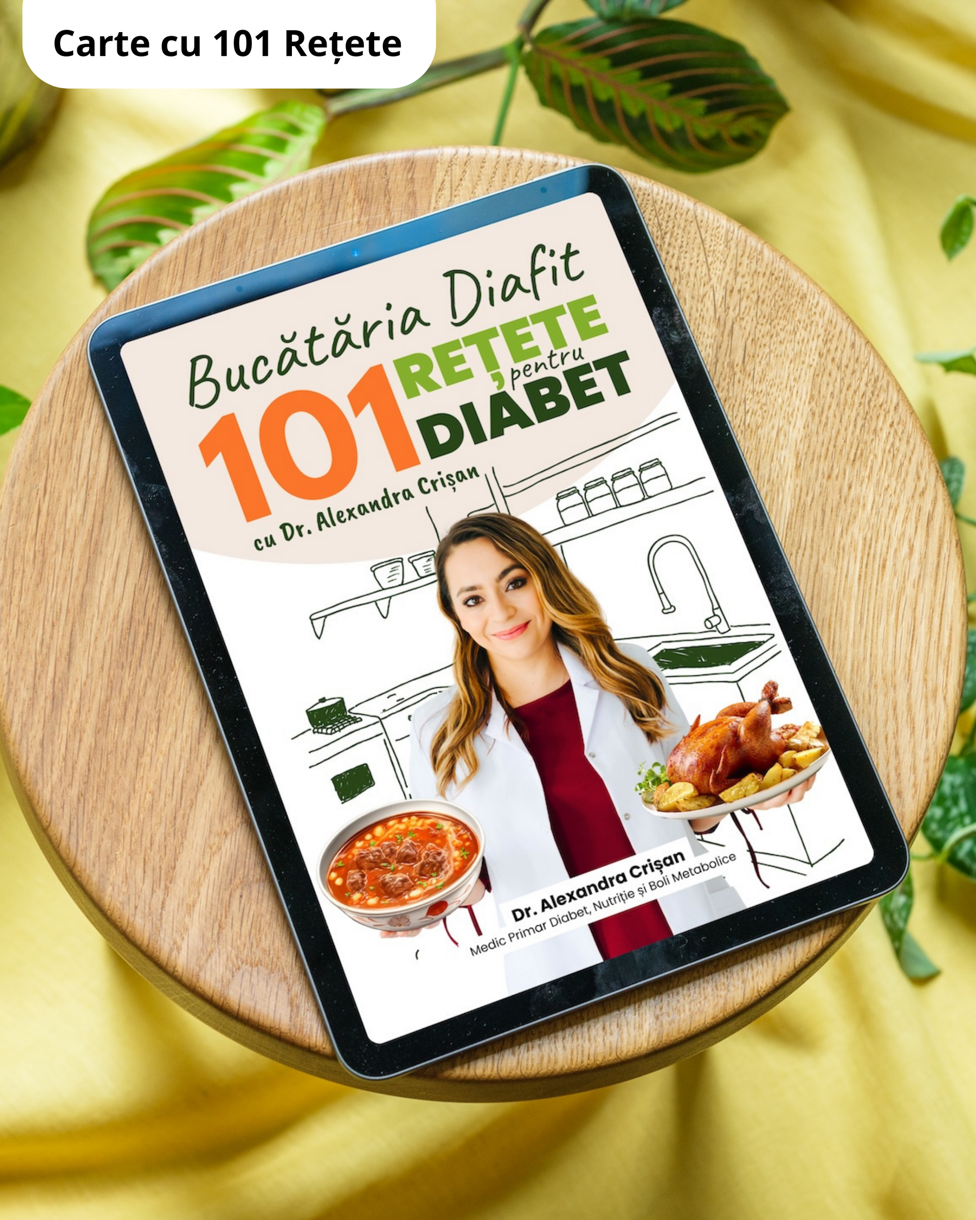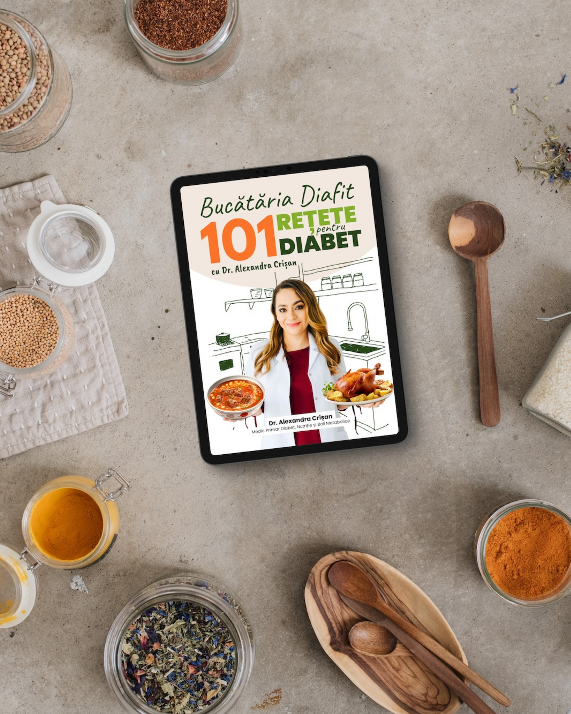 Cartea “Bucătăria Diafit: 101 Rețete pentru Diabetici” este oferită doar în format digital (PDF).
